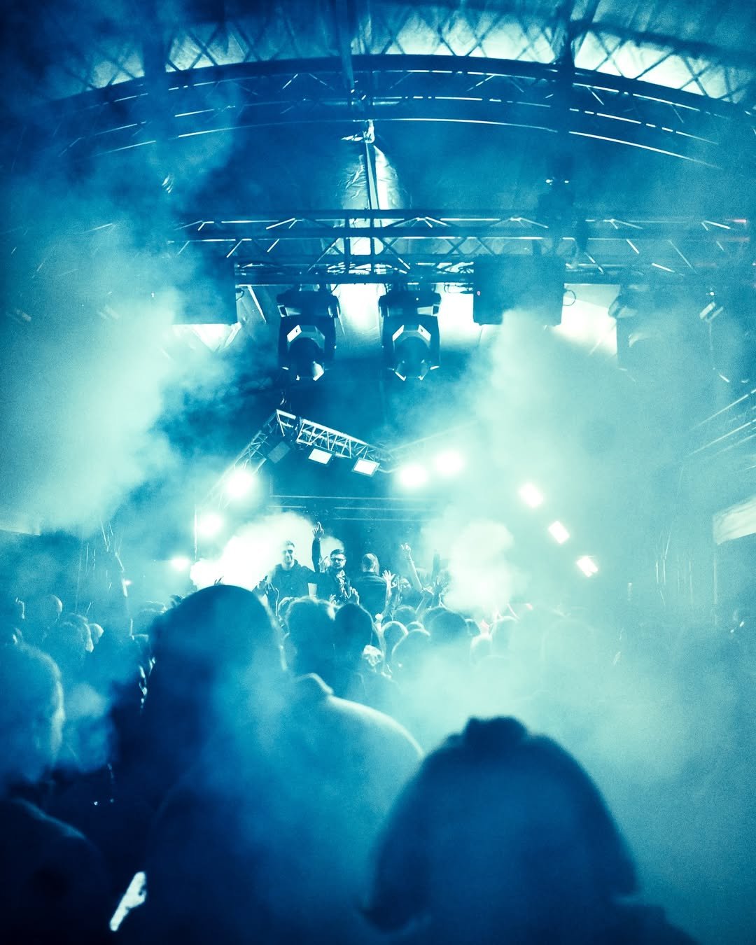 Scénarisation de l'air : Intégration de machine à brouillard pour matérialiser les faisceaux lumineux et accentuer la profondeur des jeux de lumières, créant une atmosphère visuelle dense et immersive tout au long du week-end.